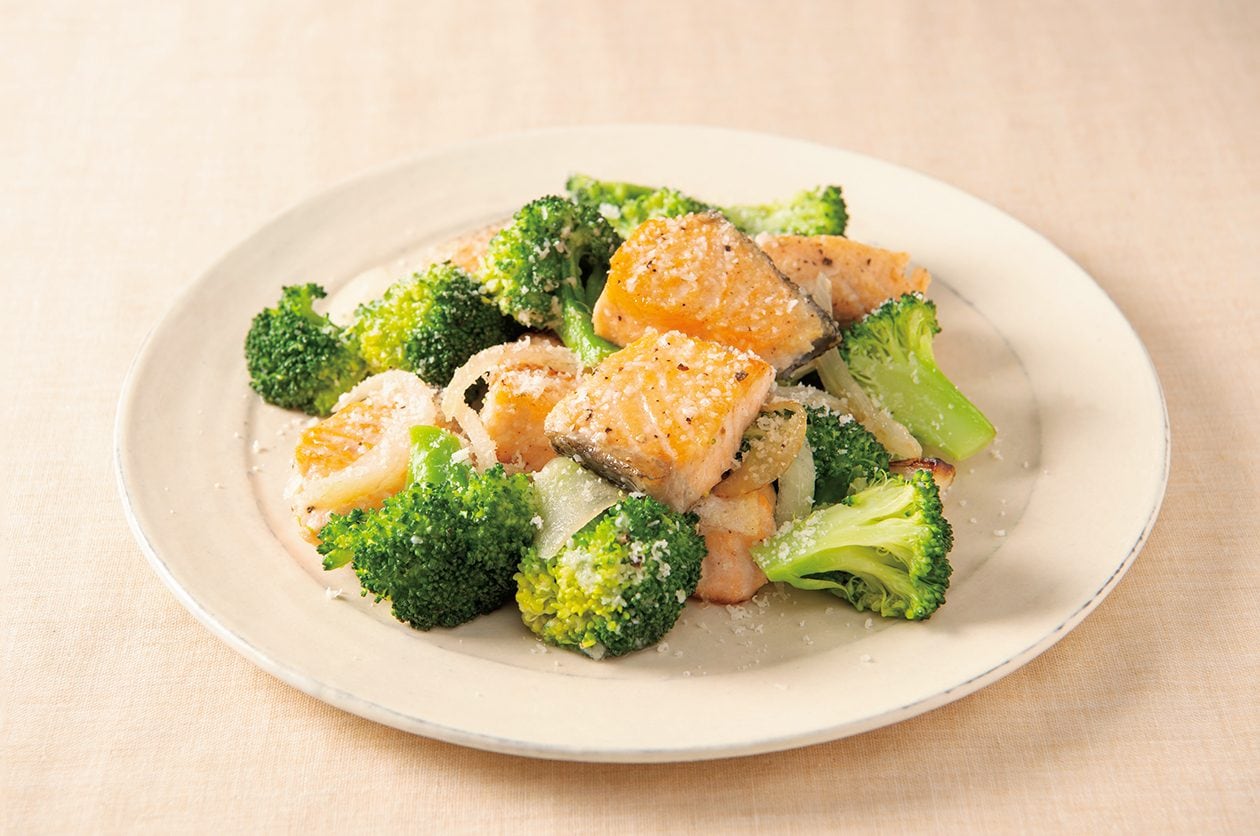 鮭とブロッコリーのチーズ炒め。おいしく手軽な“骨活”レシピ。フードクロワッサン オンライン。