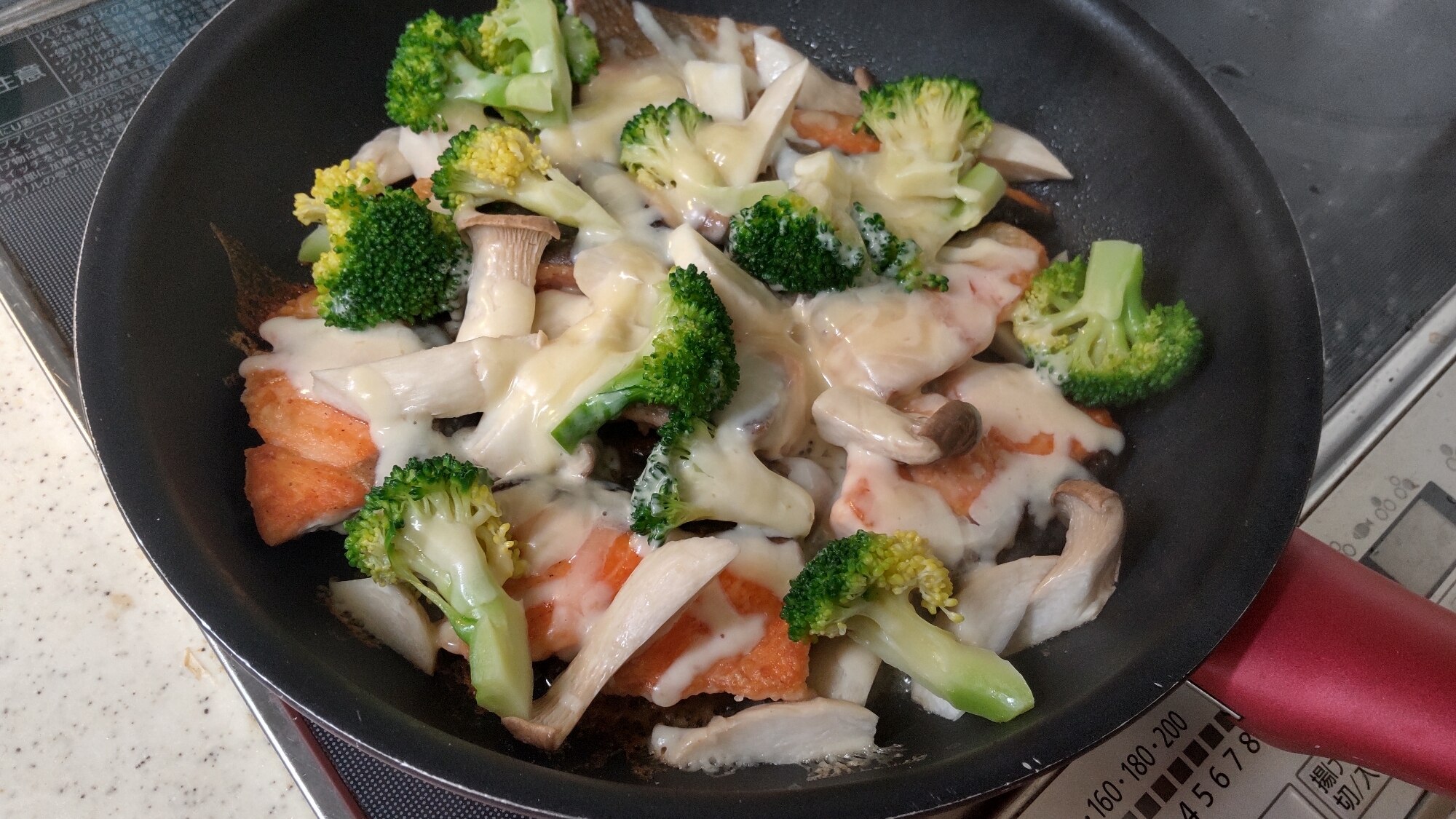 フライパンで出来る!鮭ときのこのチーズ焼き きちんとキッチンbydaiei。