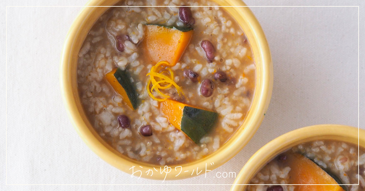 かぼちゃとあずきのいとこ粥のレシピ ぽっかぽかの冬至粥おかゆワールド.com。
