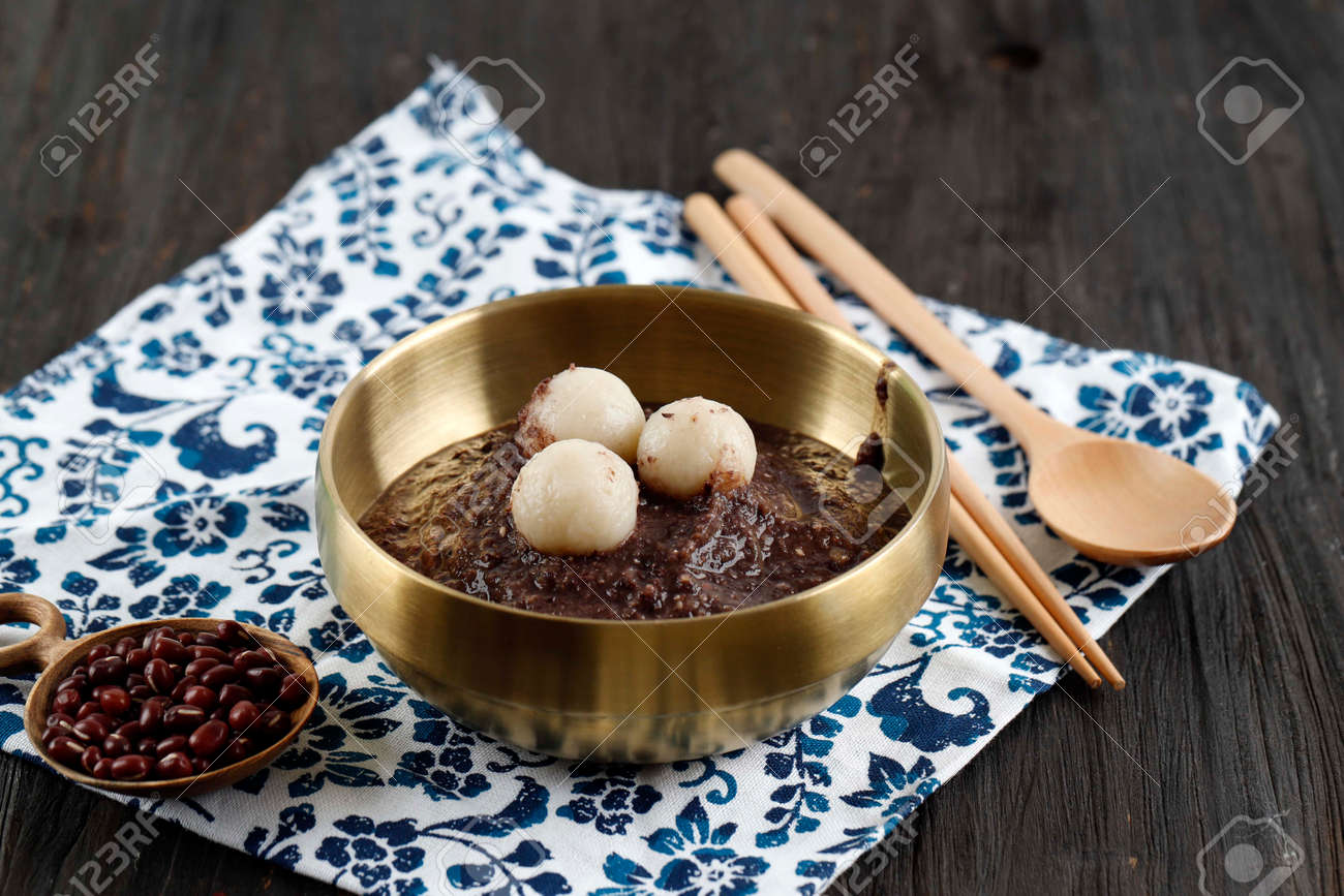 小豆粥冬至として人気の韓国伝統料理小豆粥とライスケーキの写真素材・画像素材 Image 180966463。