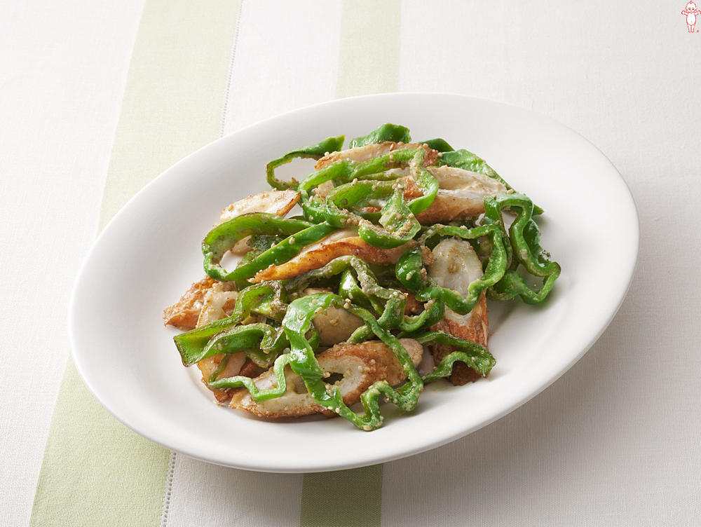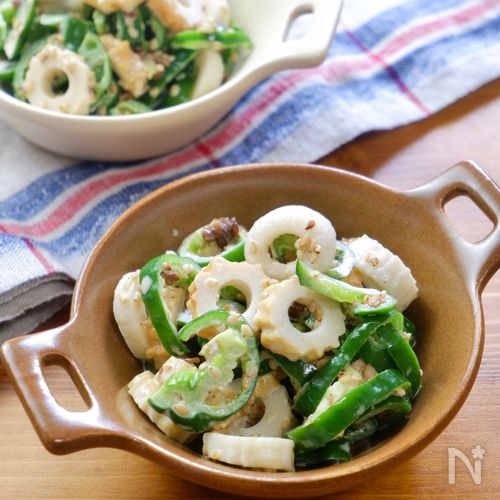 レンチンで☆『ちくわと丸ごとピーマンの胡麻マヨ和え』。