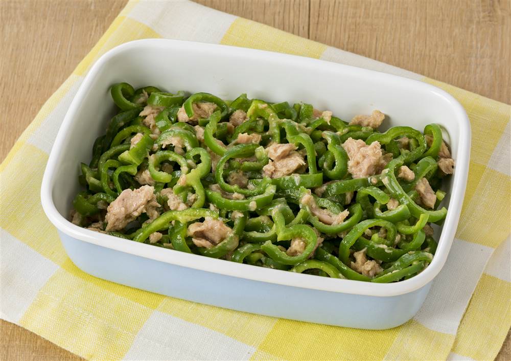 和えるだけの簡単副菜! ピーマンとツナのマヨマスタード和え。