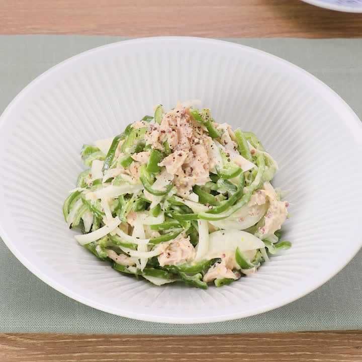 2工程だけの簡単レシピ✨ ピーマンと新玉ねぎのツナマヨ和え 材料 ピーマン 1袋 新玉ねぎ 大1 2個 ツナ缶 2缶 マヨネーズ お好みの量だし醤油 醤油でも可小さじ1 レモン汁 大さじ1 塩胡椒 少々 作り方 1. ピーマンと新玉ねぎを薄切りにする。 2. ツナ缶を水切り。