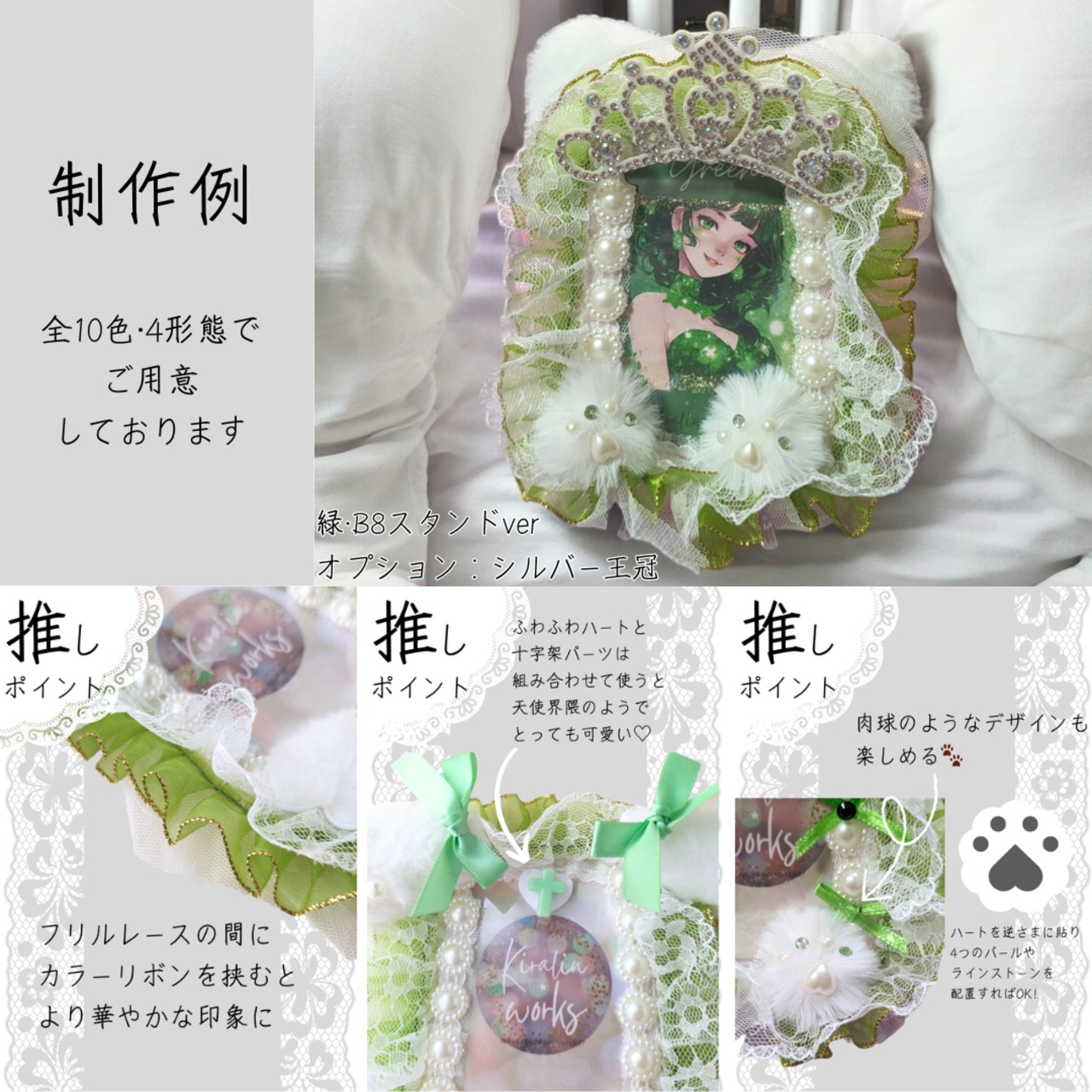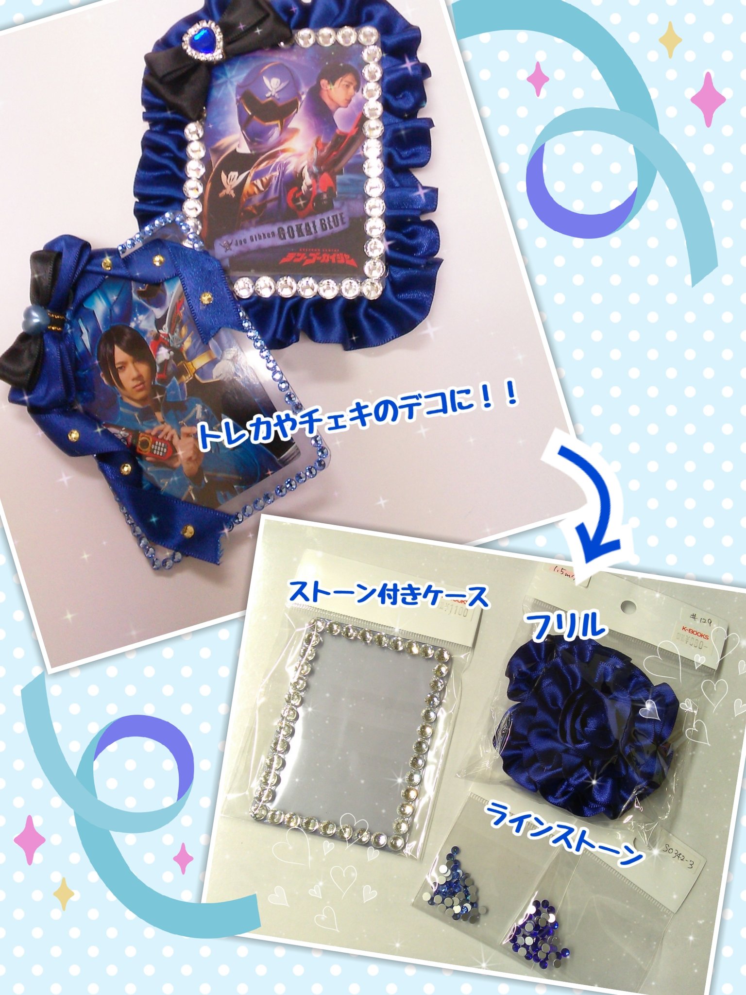 青 B7スタンドver スウィートガーリーな素材でつくるトレカケースホイップデコ16点キットデコホイップホイップデコトレカデコ作り方 推し活ハンドメイド生写真プロマイド硬質ケースデコ。