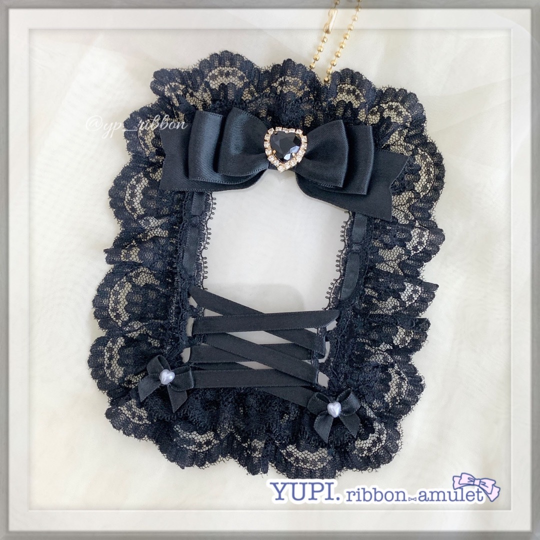 猫耳 編み上げリボン チェキケース トレカキーホルダー ブラック×くすみピンク 黒量産型地雷系ハンドメイド推し活グッズカラーYahoo!フリマ 旧PayPayフリマ。