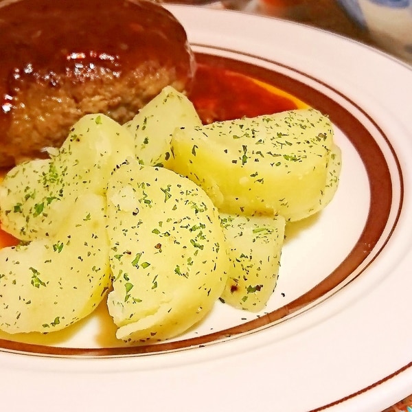 付け合わせに電子レンジでじゃがいものパセリまぶし。