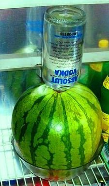 スイカにアルコールの瓶をぶっさして数日しみこませて作る「アルコールスイカ」 - posfie。