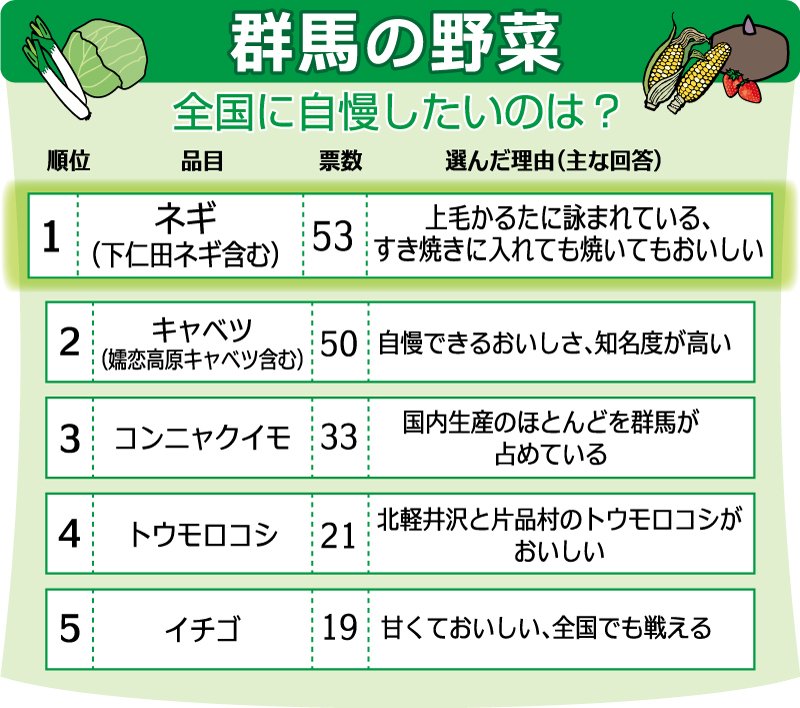 ランキング 下仁田ネギに嬬恋キャベツ 全国に自慢したい群馬の野菜は?上毛新聞電子版群馬県のニュース・スポーツ情報。