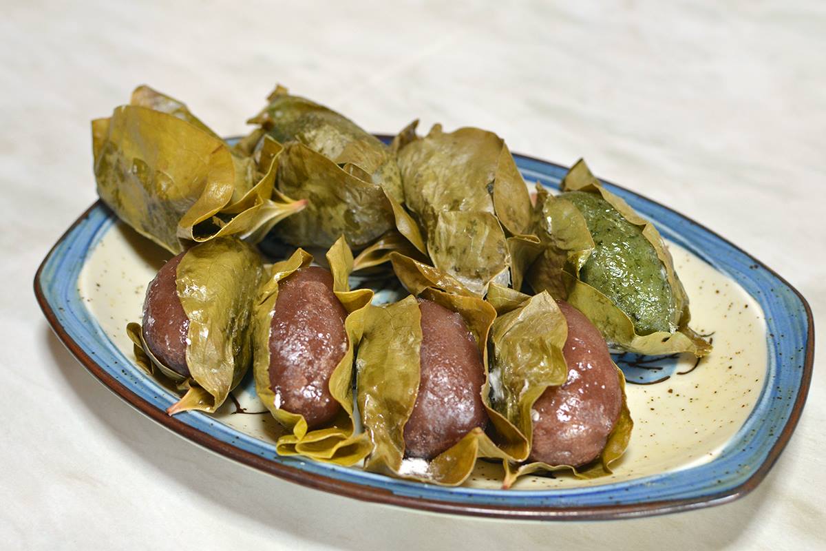 がめの葉もち」葉っぱで包む九州筑前のだんご団子・饅頭・包む葉っぱ。