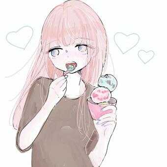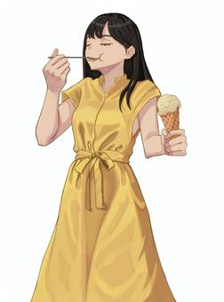 アイスクリームを食べる女性のイラスト素材126954739- PIXTA。