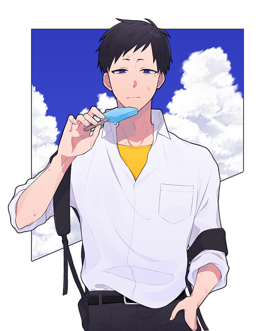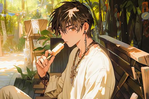 夏の暑い日にアイスを食べる若い男のイラスト素材104267303- PIXTA。