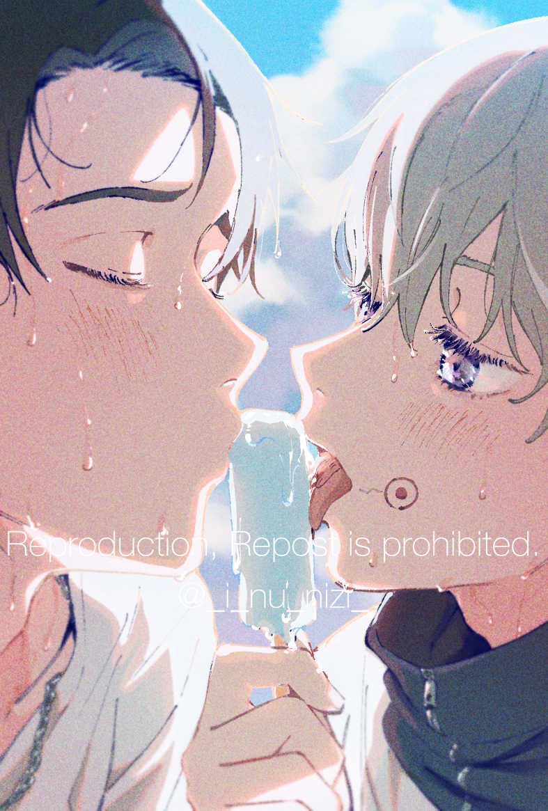 オルタ🐶 on X: "乙棘が、猛暑の中1本のアイスを二人で分け合って食べているだけの絵です。 💍の存記https:t.co n6oQR7R209"X。