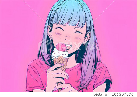 アイスを食べるポップな女の子 AI生成のイラスト素材105597971- PIXTA。