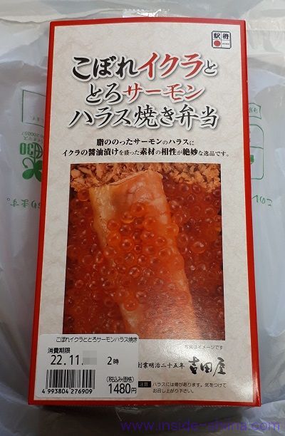 吉田屋「こぼれイクラととろサーモンハラス焼き弁当」は東京駅でも買える!カロリー、糖質は! 口コミ- アウトサイド シーナ。