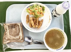 本日の給食は “カナダ料理!” 豊中市では1月21日から24日を学校給食週間として、特別メニュー 世界の料理 が出ます- 大池小学校。