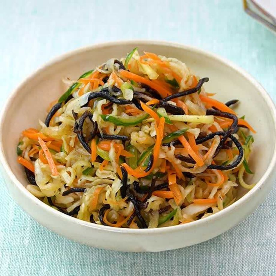 さっぱり食べられる! 切り干し大根とひじきのごま酢サラダ。