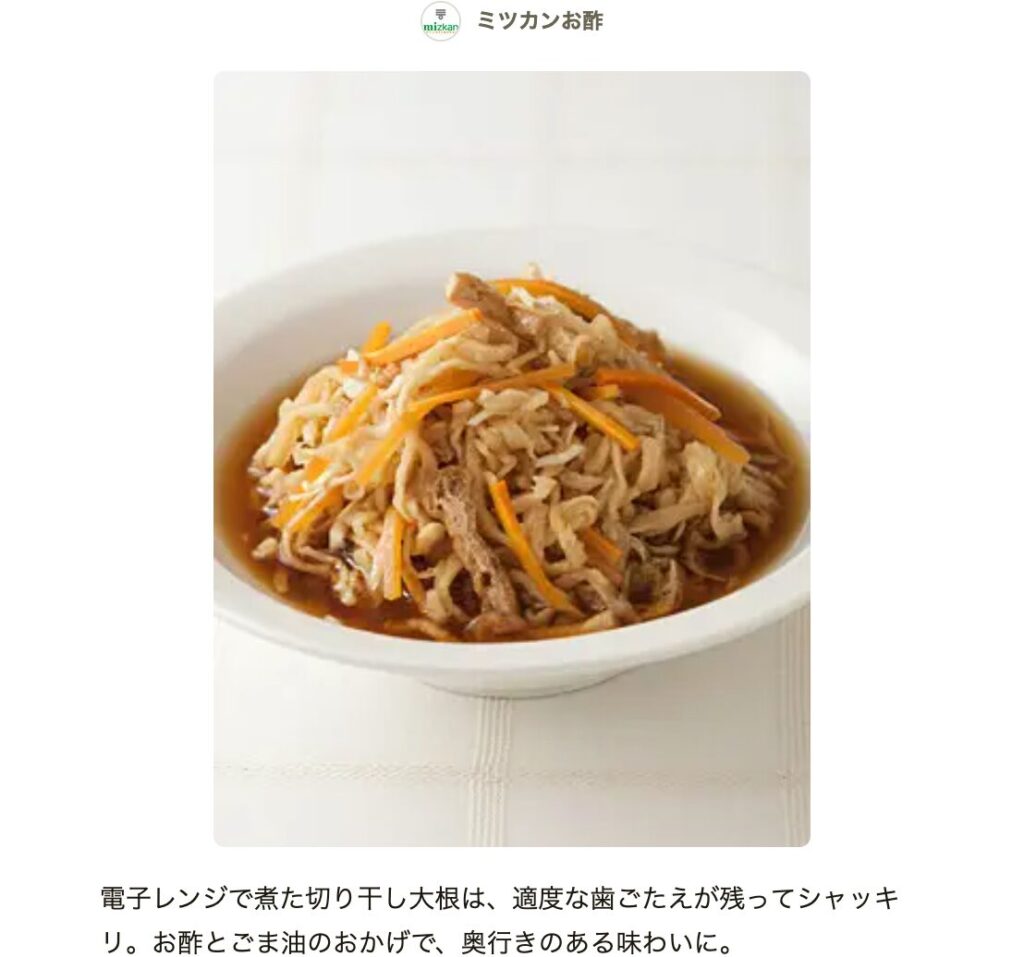 『一生物のレシピ』本当に美味しい切り干し大根は主菜になります。時短でも手抜きでも無いですが最高です。