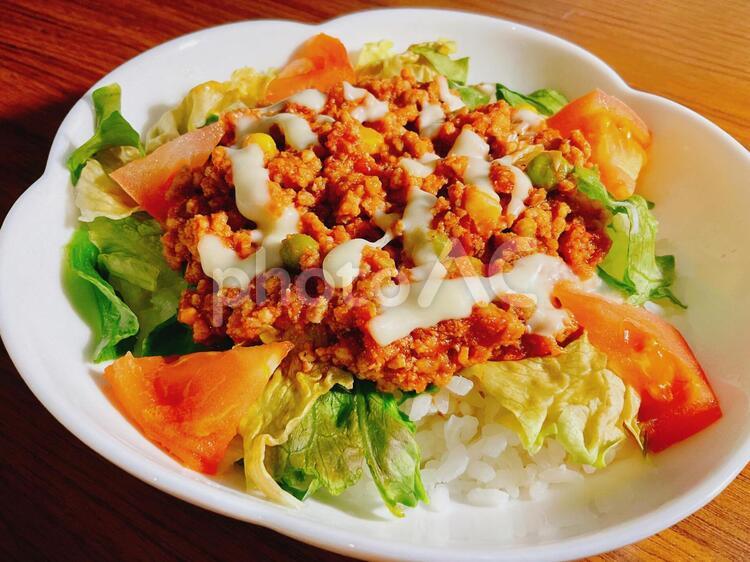レタスたっぷりタコライス 02835003781 の写真・イラスト素材アマナイメージズ。