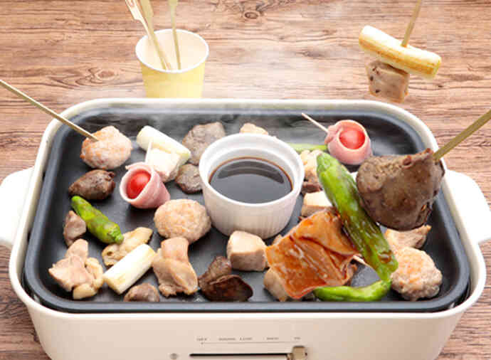 おうち縁日」を楽しもう! 1 ホットプレートでバラエティ焼き鳥 おいしいNEWSエバラ食品。