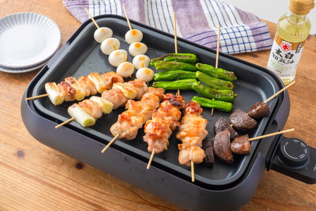 ホットプレートで!みんなで楽しむおうち焼き鳥のレシピ・作り方マルホン胡麻油。