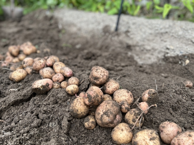 ジャガイモの葉っぱが枯れるのを待って収穫となると雑草は育ち、どこにジャガイモ植えたかわからなくなってしまい掘るのが大変でした😅ここ掘れワンワン、的な気持ちで掘り進む。 まるでスコップで芋掘りトーニング シャドークイーン、アンデスレッド、北あかりを収穫。