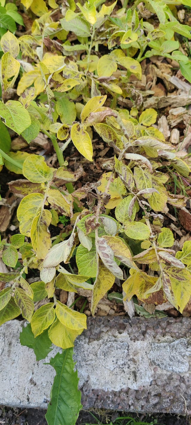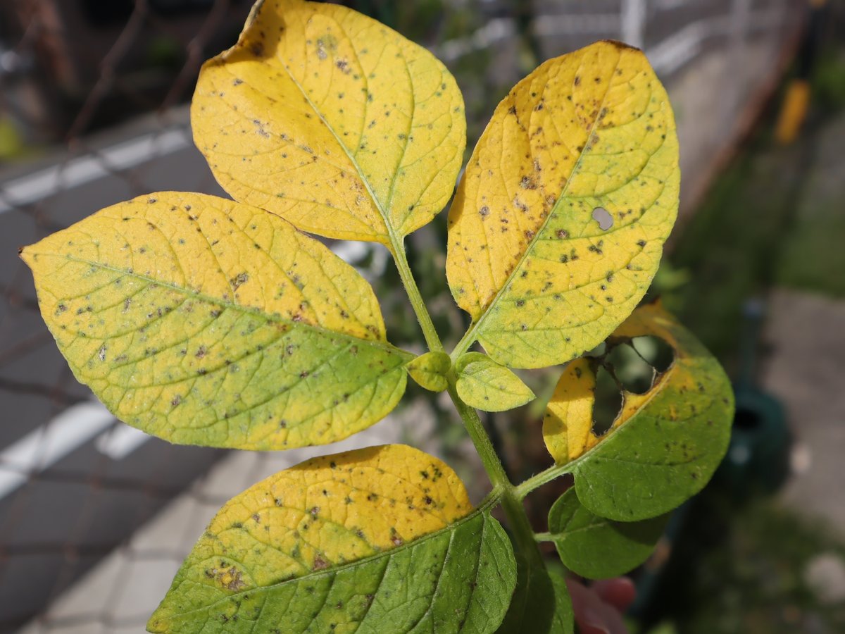 ジャガイモの葉の黄変:モザイク病か、収穫時期か? : 世話要らずの庭。