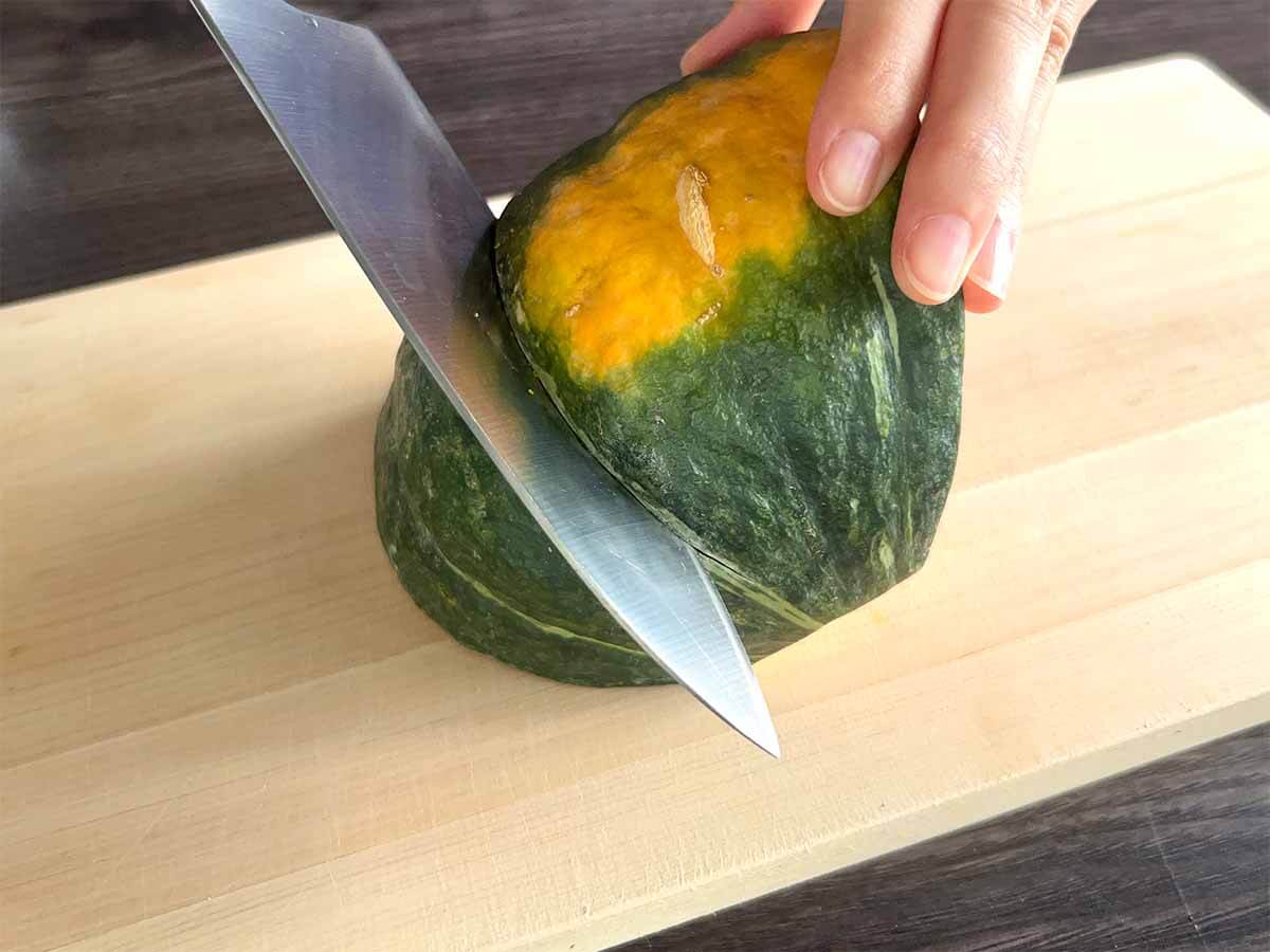 かぼちゃの切り方 硬いかぼちゃを切りやすく!旬を丸ごと味わえちゃう♪。