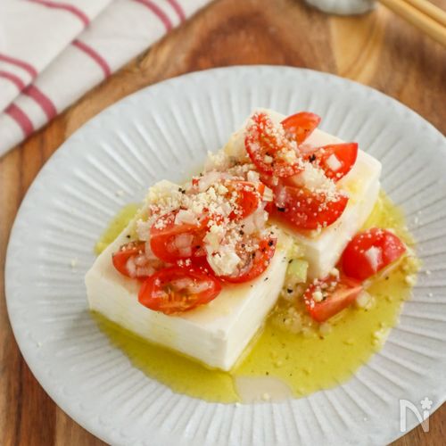 オリーブオイル香る♡ミニトマトのおしゃれ冷奴レシピサイトNadia。