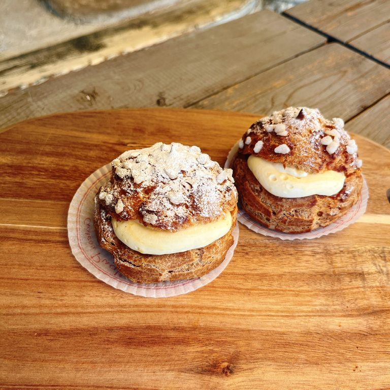 栃木佐野 シューアラクレームカスタード chou à la crème Custard 。クッキーシューに注文を受けてからクリームを入れる出来立て シュークリーム - メシペロ.com。