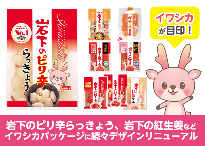 岩下のピリ辛らっきょう、岩下の紅生姜など、イワシカパッケージに続々デザインリニューアル。岩下食品。