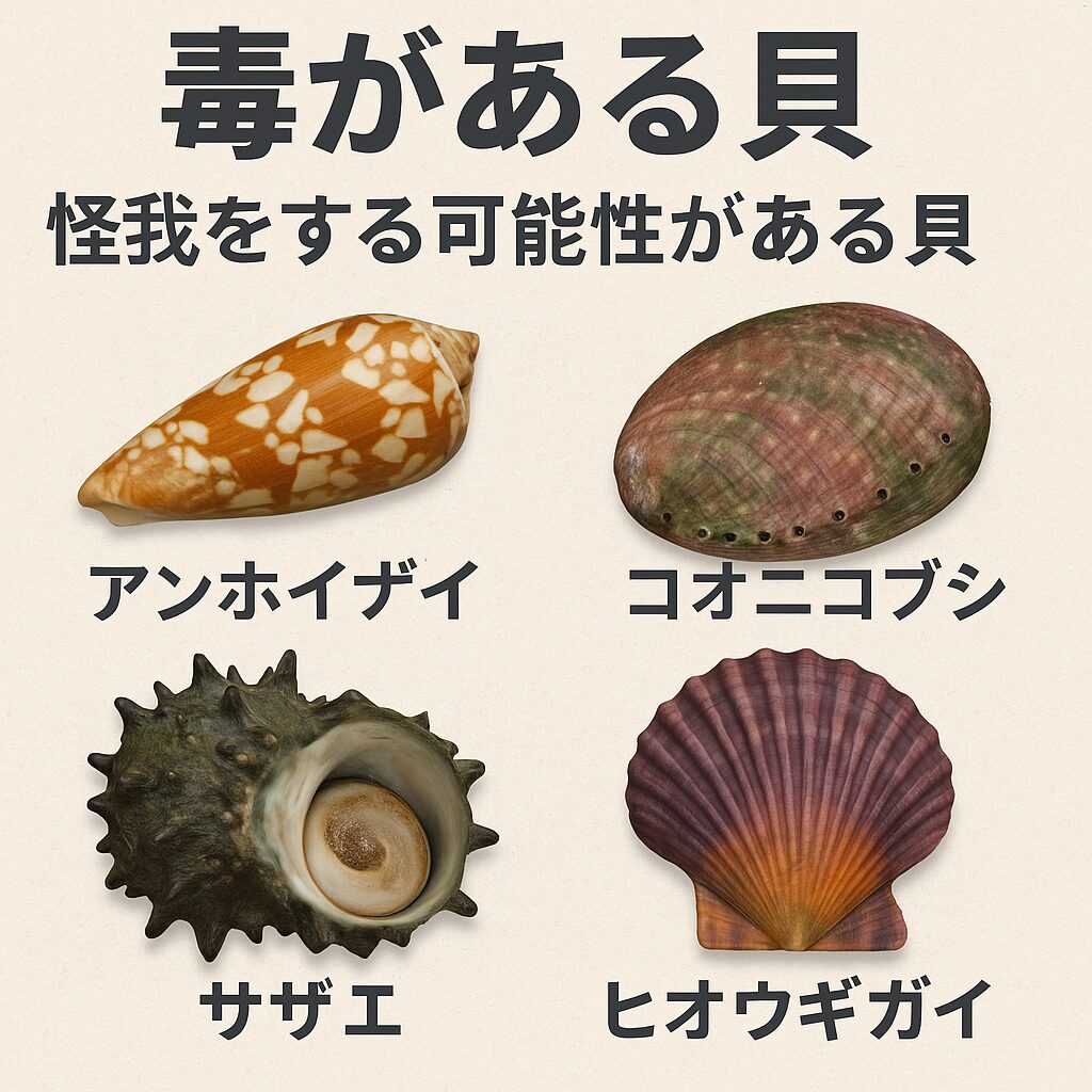 潮だまり タイドプール で見られる貝の中には、「食べられるもの」と「食べられないもの」が混在しています。