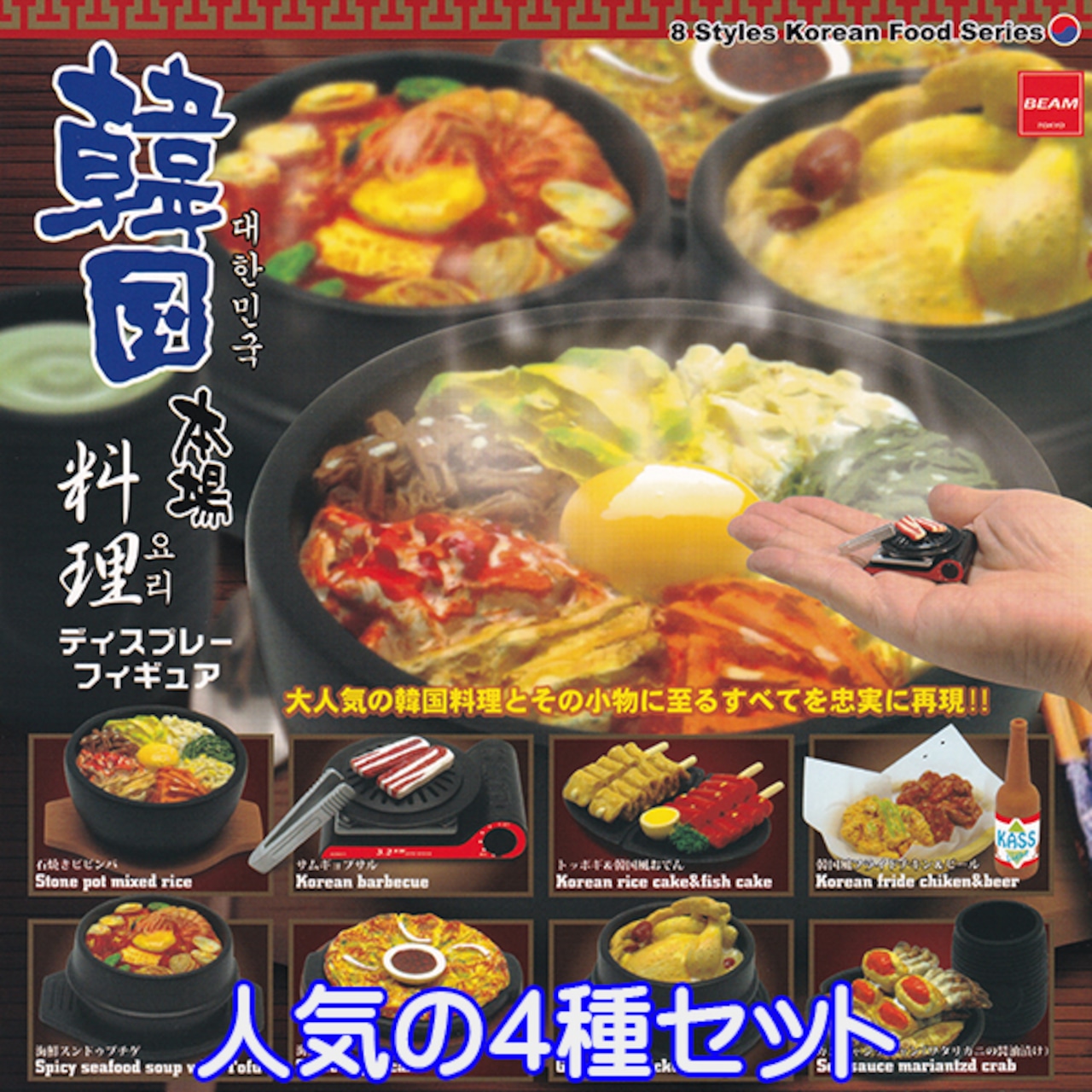 本場 韓国料理 ディスプレーフィギュア 食べ物 ミニチュア ぷち サンプル グッズ フィギュア ガチャガチャ ビーム 人気の4種セットお宝市場BASE店フィギュア・ガチャガチャ・ガチャポン・食玩・プライズ・アニメ・グッズ・模型・ミニチュア。