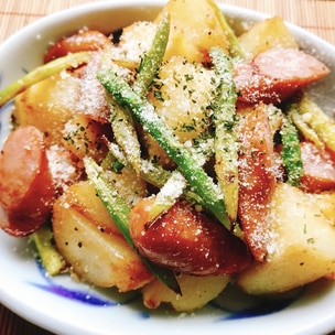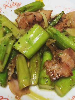 材料2つ 旨味の宝庫♡アスパラベーコンのめんバター焼き♡。