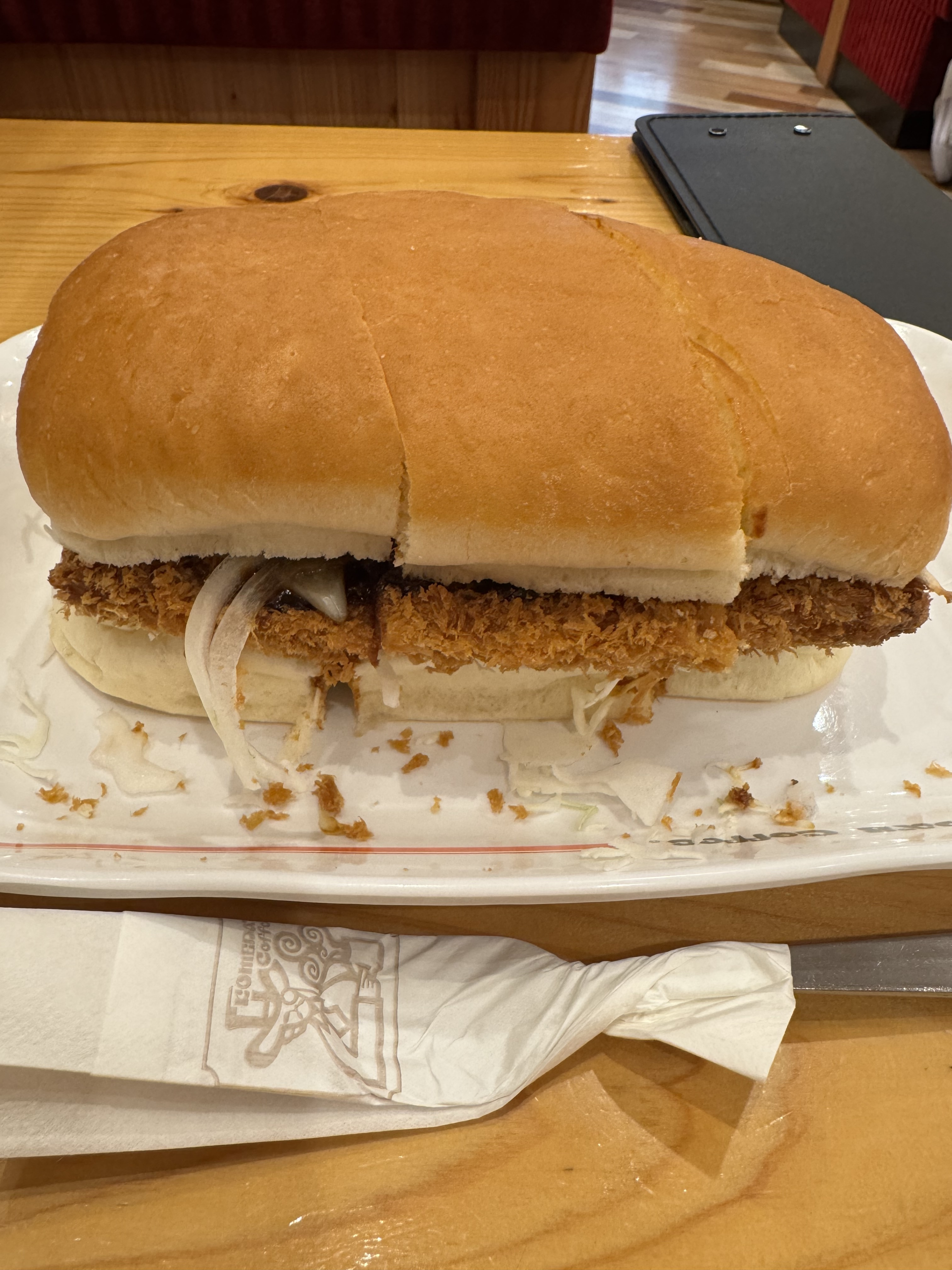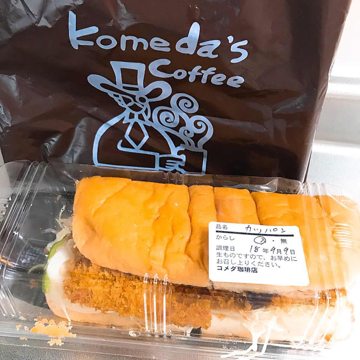 てがきのゆっきー on X: "コメダ珈琲店の「味噌カツパン」が大好きなんだけど一人では食べきれないから いつも頼めないでいたんだけど勇気を出して「半分食べて、半分持ち帰りにできますか」と聞いたら、対応してくださった!!https:t.co EK5Z1hgGVu"X。