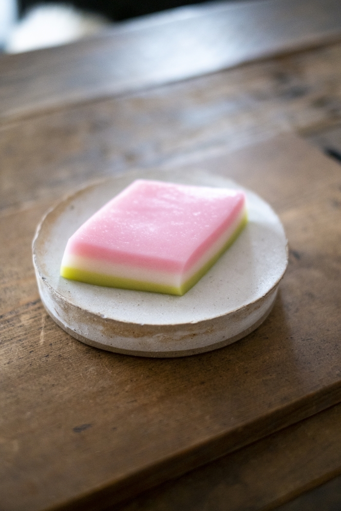 ひな祭りレアチーズケーキ 菱餅をイメージした簡単スイーツ。